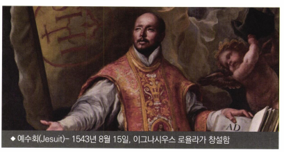 종교개혁으로 사람들이 진리에 눈을 뜨자 카톨릭은 1543 년 월 15 일 이그나시우스 로욜라(Ignatius Loyola 1491~1556)는 개신교회를 박멸하기 위해 예수회를 창설했다. 많은 기록들은 예수회를 역사상 가 장 간악한 정치적 집단으로 소개한다.