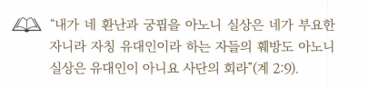 서머나 교회에 책망은 없으며 그들의 환난과 궁핍올 더욱 극심하게 만든 사단의 회에 대해 말하고 있다. 서머나 교회는 ‘‘환난과 궁핍”(계 2:9) 의 삶을 살고 있었다. 궁핍이란 헬라어로 두 가지 단어가 있는데 , ‘‘페니아(penia)” 는 단지 넉 넉하지 못한 상태의 가난이고, 여 기서 사용 된 “프토케이아(TTTWXE La)” 는 아무것도 없는 거지신세 , 구걸하는 생활을 말한다. 다시 말해 정말 찢어지게 가난했다. 서머나 신자들이 왜 이리 환난과 빈곤 속에서 살았을까?