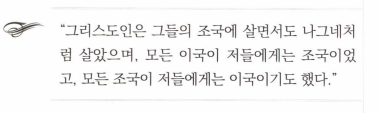 사탄의 세력이 팽배하고 생명의 위험이 가득한 곳에 두려움 없이 뿌리를 박고, 굳세게 살아가는 소소의 충성된 하나님의 증인 안디바의 모습을 볼 수 있다. 세상은 그리스도인들이 마음 놓고 평안히 뿌리박고 오래 살 곳이 아니다. 하지만 그렇다고 언제까지나 더 나은 곳, 더 편한 곳, 더 살기 좋은 곳을 찾아 전전긍긍할 수도 없다. 좋건 나쁘건 원하든 원하지 않든 세상의 어느 곳에 있든지 하나님께서 각자에게 지 정해 주신 곳에서 그리스도를 증거해야 하는 것이 충성된 증인 안디바 의 신앙이다. 그런 의미에서 그리스도인의 생애는 도피가 아니라 정복 인것이다. 이렇게 세상에서는 나그네이면서도 이 땅 어딘가에는 정착해 살아야 하는 그리스도인의 생활 태도가 2세기 이름이 알려지지 않은 어느 그리스도인에 의해 이렇게 고백되고 있다.
