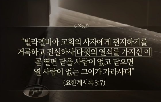다윗의 열쇠를 가지신 그리스도께서는 왕의 권세로 문을 여셨다. 예수 그리스도께서만 여닫으실 수 있는 문들이 있다.