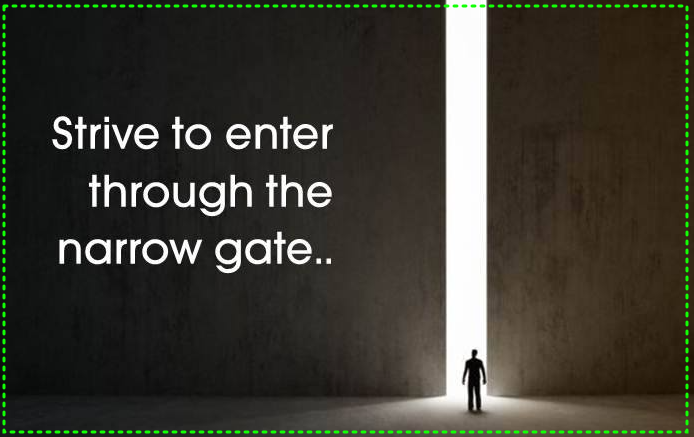 예수 그리스도만이 생명의 문이시며 , 진리와 구원의 문이시다. 그분이 문을 여시고 또 들어오게 하실 수 있다. 이 문으로부터 빛이 비춰오고 있으므로 우리가 원하기만 하면 이 빛을 받을 수 있으며 이 문은 항상 열려 있기 때문에 언제든지 들어갈 수 있다. 그러나 이 문은 좁은 문이기 때문에 양손과 어깨에 세상 것을 가득 지고는 들어갈 수 없는 문이다.