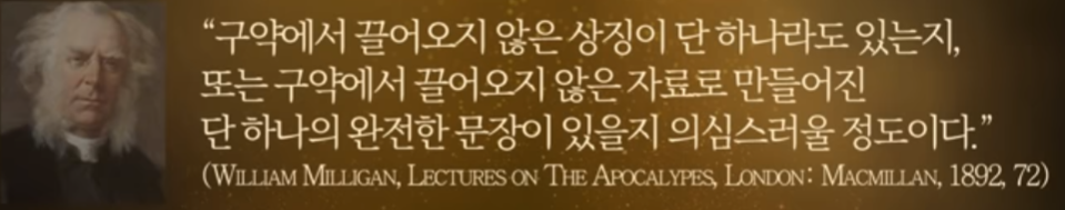 요한은 계시록의 많은 표현을, 아니 거의 대부분의 사상을 구약에서 가져왔다. 구약의 여기저기 있는 하나님의 말씀을 한곳에 모아 놓은 것이 요한계시록이다.