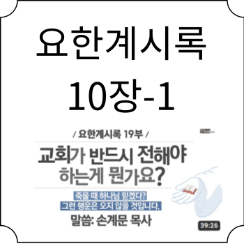 요한계시록은 예수님의 승천 이후부터 재림하실 때까지의 기독교 역사를 함축된 언어와 상징으로 계시해주신 예언이다. 계시록 10장의 배경은 일곱 교회 중에서 19세기 빌라델비아 교회 시대에 벌어지는 일이면서 우리가 살고 있는 이 마지막 시대와 연결되는 중요한 예언을 마치 릴레이 선수가 바통을 넘겨주는 것처럼 전달하고 있다. (=계시록 14장에 나오는 세 천사의 복음이 전파되는 시대)