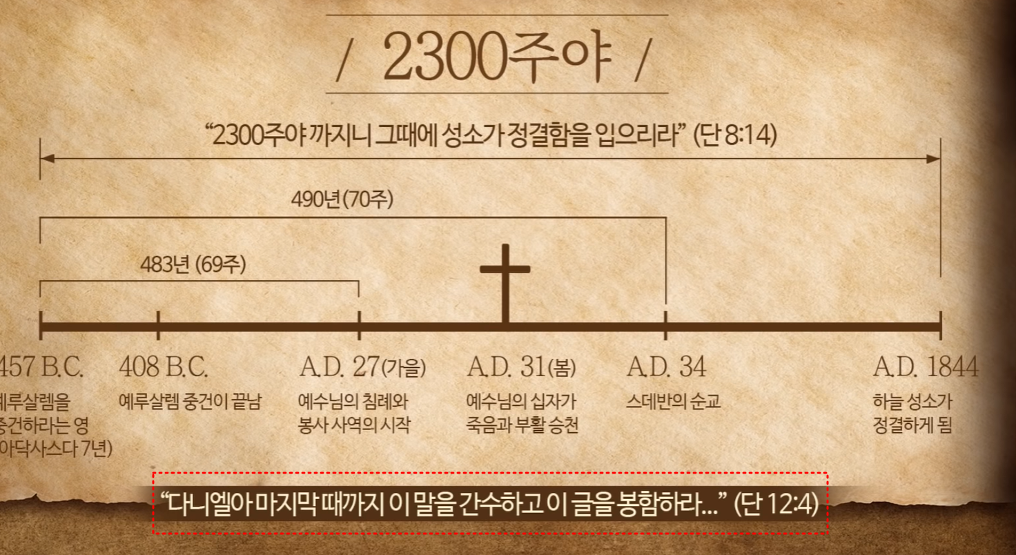 계시록 10장에 펴 놓은 작은책은 다니엘서에서 예언된 시간 또는 시기에 관한 말씀이었다. 그것은 다니엘 8:14절에 언급된 2300주야 예언의 끝인 1844년을 지목하고 있으며, 이 예언을 끝으로 시기와 관련한 예언은 다시는 없기 때문이다. 오늘날에도 어떤 사람들은 예수님이 "언제 재림한다" 그렇게 시기를 정하는데, 그것이 성경적이지 않은 이유는 2300주야라는 예언된 시간 외에는 다시는 시간을 정해주지 않으셨기 때문이다. 그렇기 때문에 우리는 "예수 그리스도의 재림의 날짜가 언젠가 될 것이다"라는 허탄한 이야기에 속지 말아야 한다.