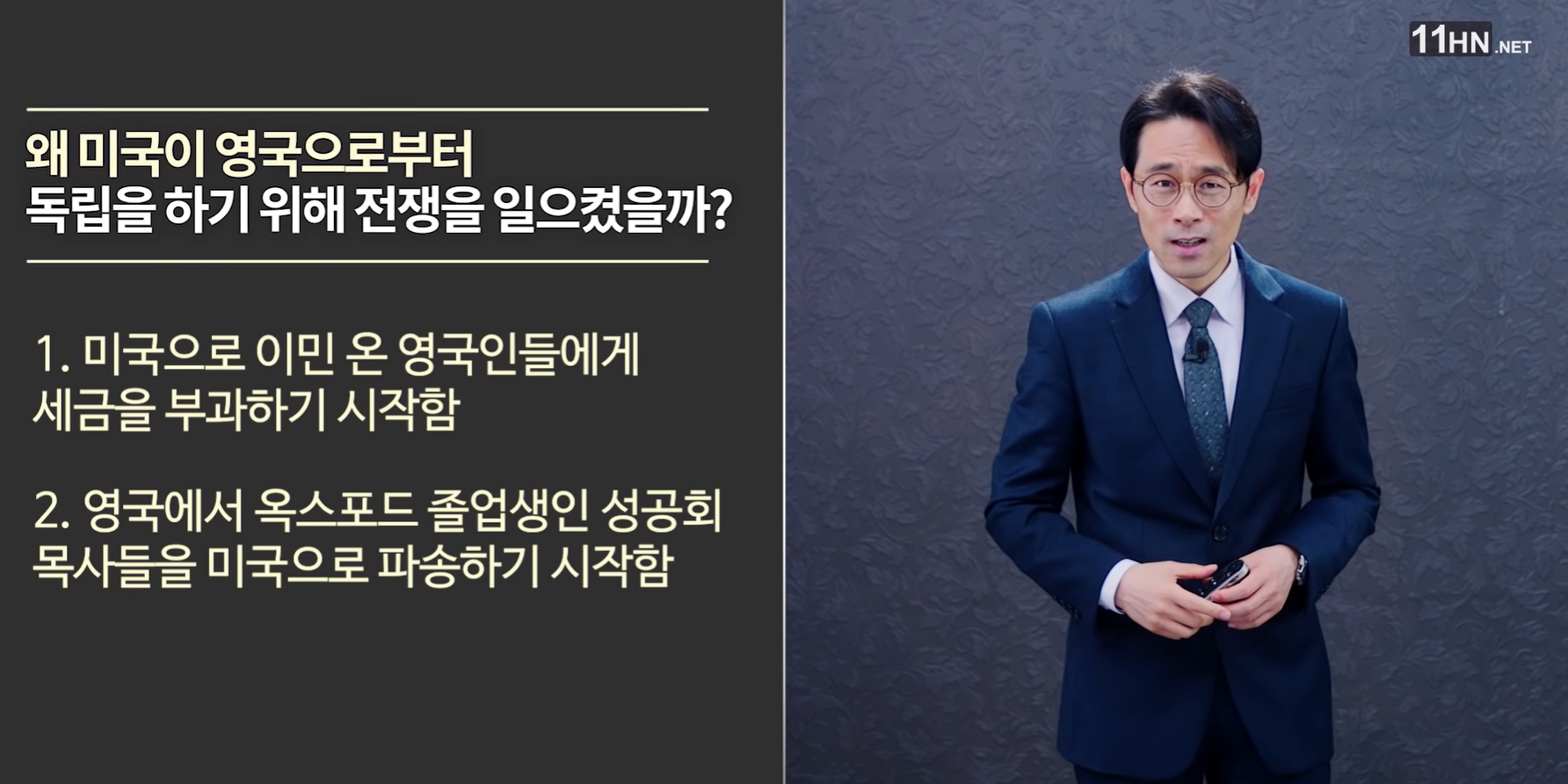 미국에 와서 신앙의 자유를 누리며 살면 됐는데, 왜 미국이 영국으로부터 독립하기 위해 전쟁을 일으켰을까? 두 가지 문제가 있었는데 첫 번째는, 스페인이나 포르투갈이 남미를 점령했을 때, 은이나 금 같은 지하자원이 많이 나와서 부자가 됬는데, 영국은 북미에서 그러한 지하자원을 얻지 못하자 미국 이민자들에게 세금을 부과하기 시작했다.
