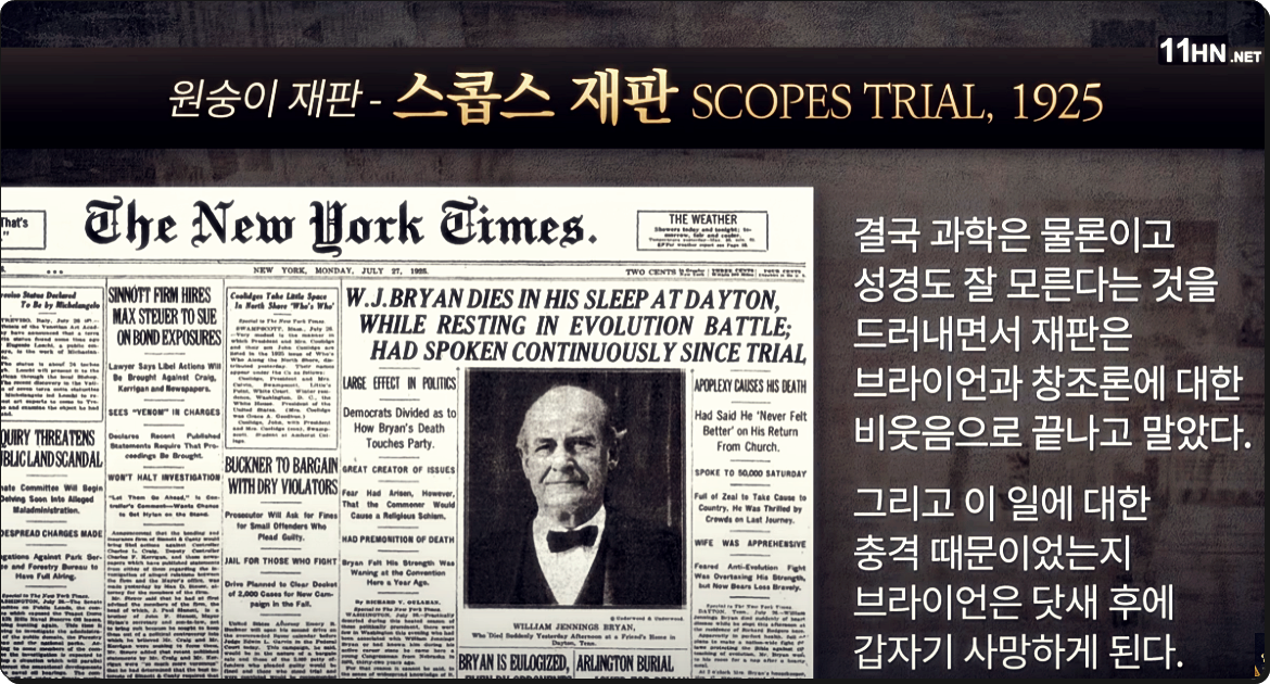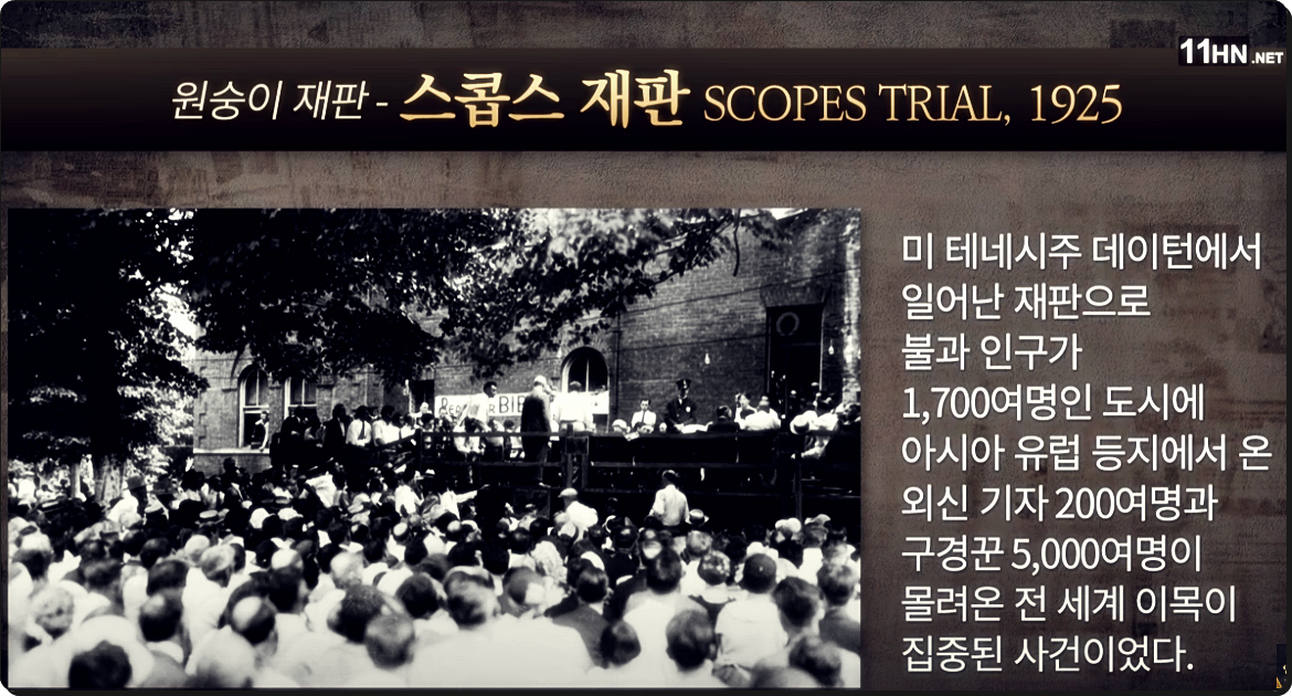 1859년 찰스 다윈이 『종의 기원』을 발표하며 진화론이 세상에 알려졌고, 이는 창조론과 정면으로 충돌하게 되었습니다. 미국 테네시주에서 벌어진 ‘원숭이 재판’은 이러한 충돌의 상징적 사건으로 기록됩니다. 생물 교사 존 스콥스가 진화론을 가르쳤다는 이유로 고발당하며 시작된 이 재판은 단순한 법적 다툼을 넘어서 창조론과 진화론, 종교와 과학 간의 논쟁의 장으로 확대됩니다. 전국에 라디오로 생중계되고 수많은 언론이 보도한 이 재판은, 창조론을 지지하는 측이 과학적 근거나 설득력 있는 논리를 제시하지 못하며 대중의 조롱을 받게 만들었습니다. 결국 이 사건은 기독교, 특히 보수적 교회가 세상 속에서 신뢰를 잃는 계기가 되었고, 교회는 점점 방어적이고 폐쇄적인 태도를 취하게 됩니다. 진화론의 확산은 신앙의 본질을 왜곡하고 인간의 기원을 동물로 격하시켰으며, 성경의 권위를 위협하게 된 것입니다. 이로 인해 기독교는 더욱더 수세적 위치에 몰리게 되었고, 진리의 수호보다는 방어에 집중하는 구조로 변하게 됩니다.