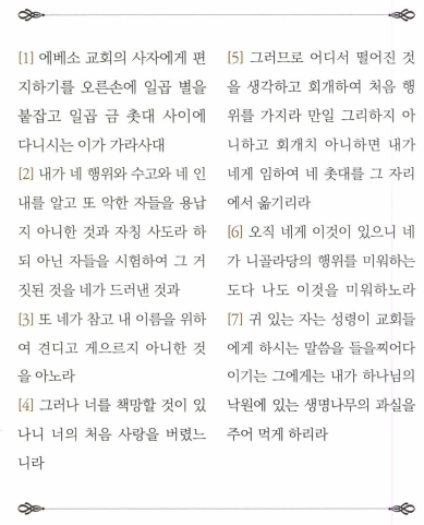 : 에베소의 이름은 ‘‘바람직한(desirable)" 이라는 뜻을 가지고 있는 , 사도 시대의 선교적 열성과 교리적 정통성 , 그리고 도덕적 순결로 특징 지워져 "첫사랑의 교회”로불릴 만큼 바람직한교회였다.